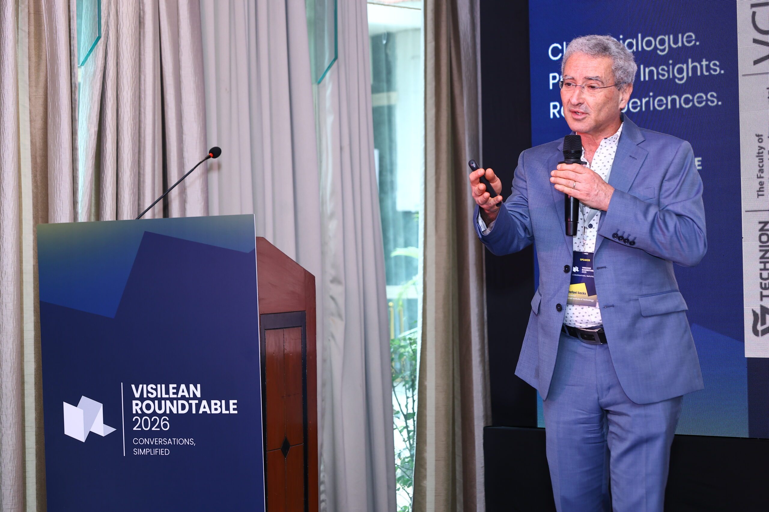 Prof Rafael Sacks challenged one of the industry’s most common misconceptions: a Digital Twin is not a visual replica of a project — it is a control system. The distinction is critical.