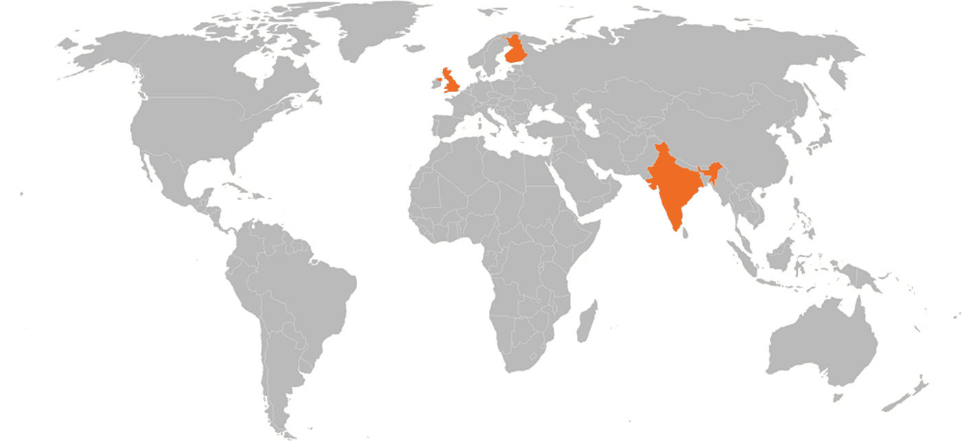 With offices in Finland, UK and India the team brings a wealth of experience in production management and bringing new technology to market.